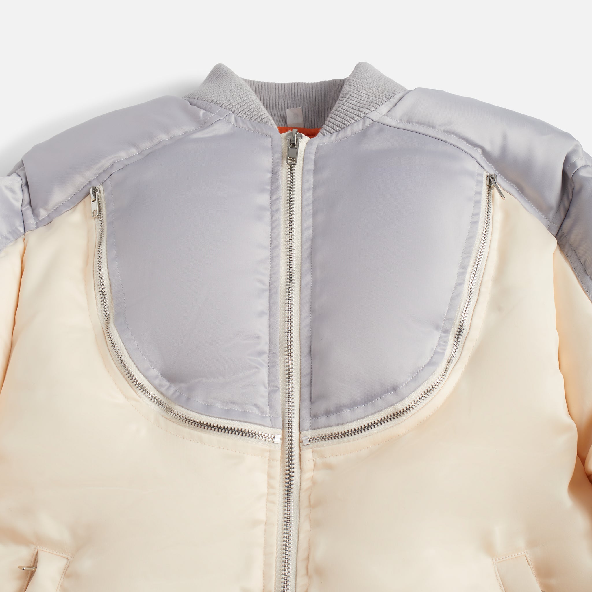 Cream & Grey Satin Bomber Jacket 100% Satin